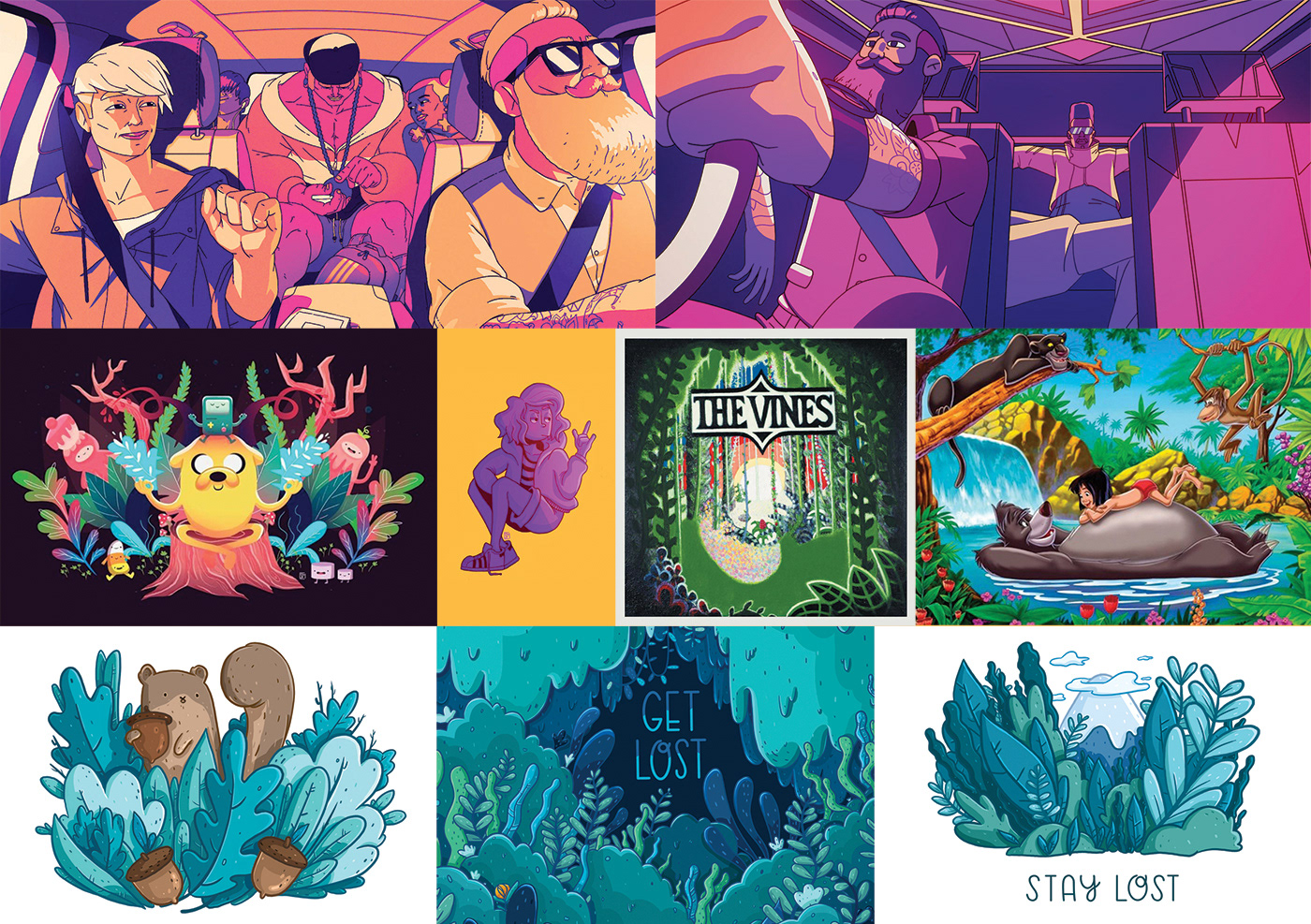 My favourite part of illustration is choosing the colour schemes. I wanted the illustrations and packaging to stand out with bright and vibrant fun colours. My main inspiration for my illustrations were Argentinian animator Le Cube (particularly his animation for Uber), American illustrator Megan Pelto, and Instagram illustrator and artist “Samanthaa.ma”. I also had a few other sources of inspiration as you can see below.