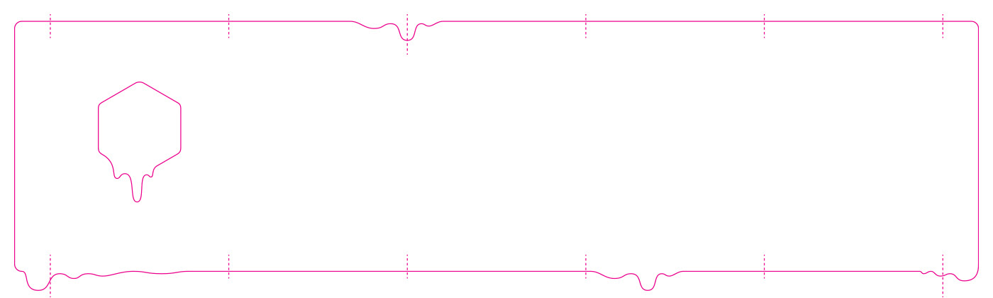 Below is the final die line of the label packaging. The solid lines show the cut/ knife line while the dotted lines show where the label folds around the jar.